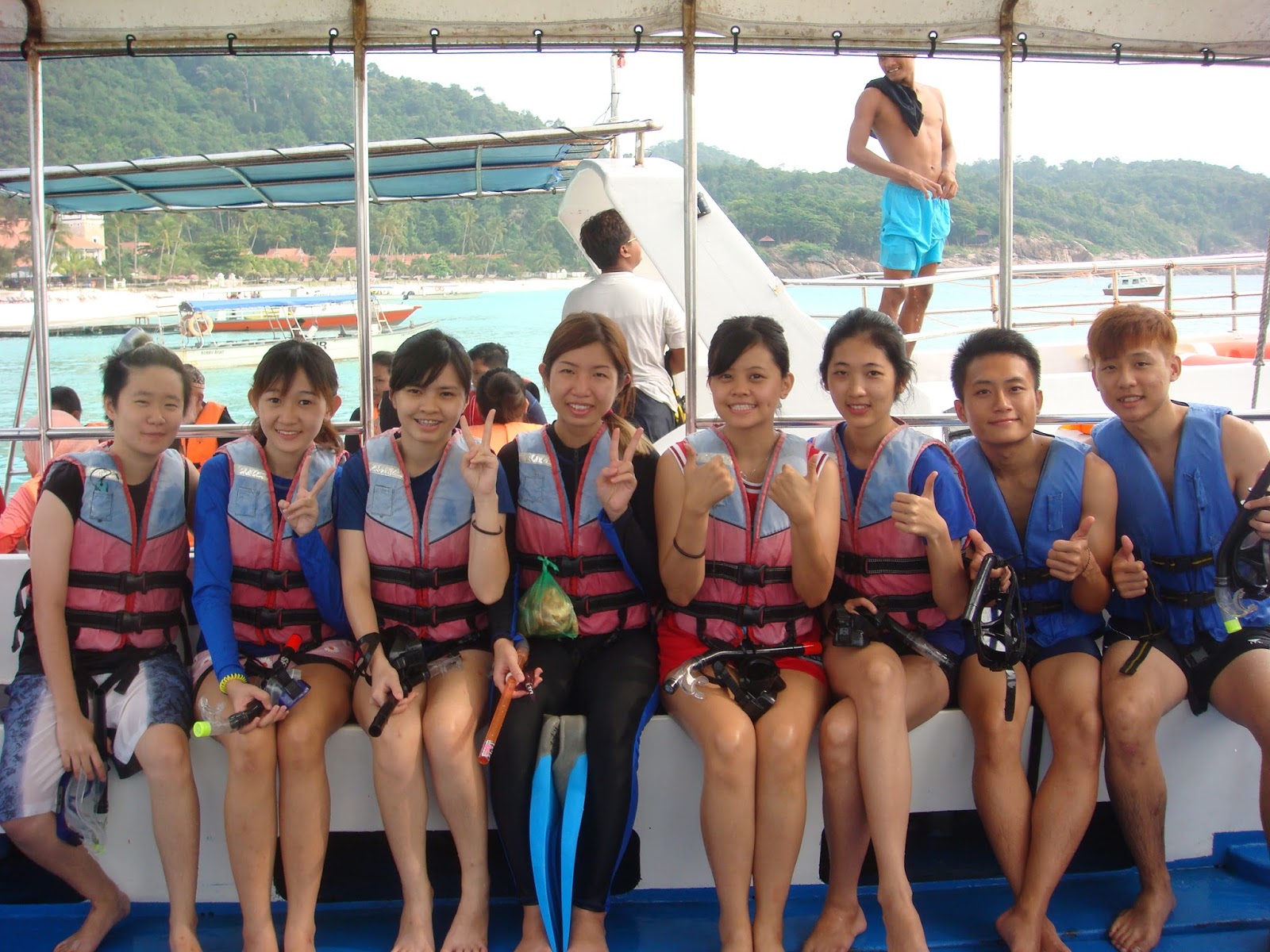 上了船就陪她拍照咯 XD